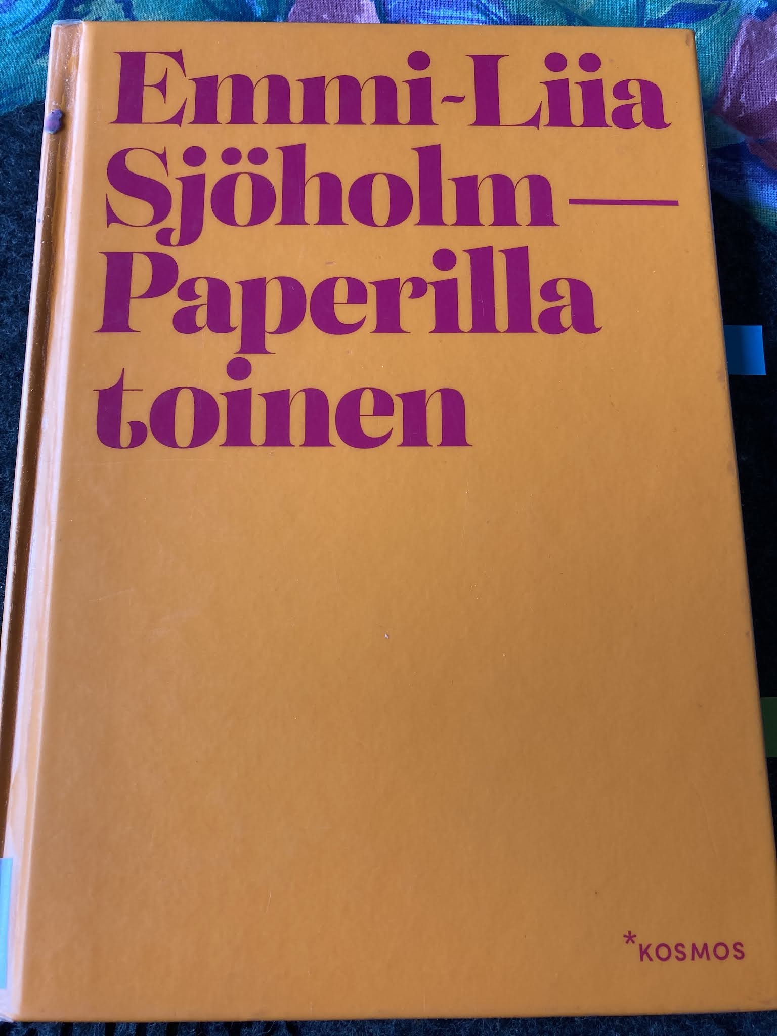 Emmi-Liia Sjöholmin esikoisteos Paperilla toinen kertoo kolmekymppisestä naisesta, joka kertoo poukkoillen elämästään. Tässä hetkessä hän on tullut raskaaksi ja hänellä on aviomies. Muisteloissaan hän on milloin yläkoulun käytävillä, milloin panemassa jotain tolvanaa ja milloin missäkin.